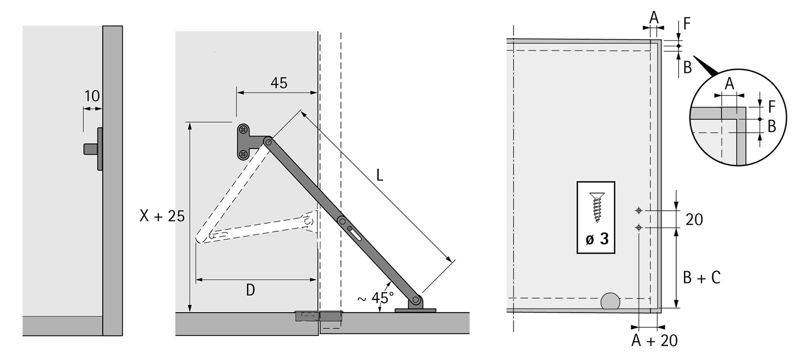 Doraz sklopných dvierok Hettich KH 200 a 250