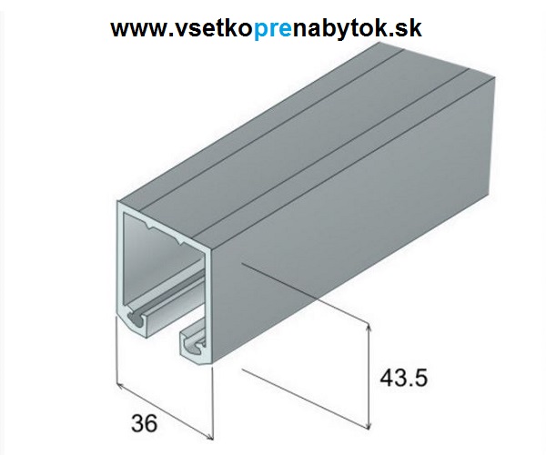 Horný vodiaci profil pre závesné interierové posuvné dvere, systém S100