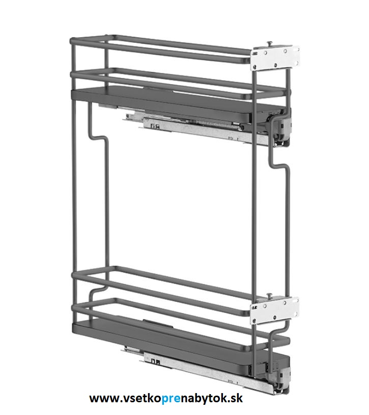 Výsuvný kuchynský kôš VIBO GALAXY s bočným vedením, 2x polica kôš je určený pre korpus 150 a 200 mm oválny pochrómovaný drôt s bielym plným dnom - pre variantu bielu oválny antracitový drôt s antracitovým plným dnom - pre variantu antracit vrátane čelného uchytenia s nastavením čela v troch smeroc... celý popis