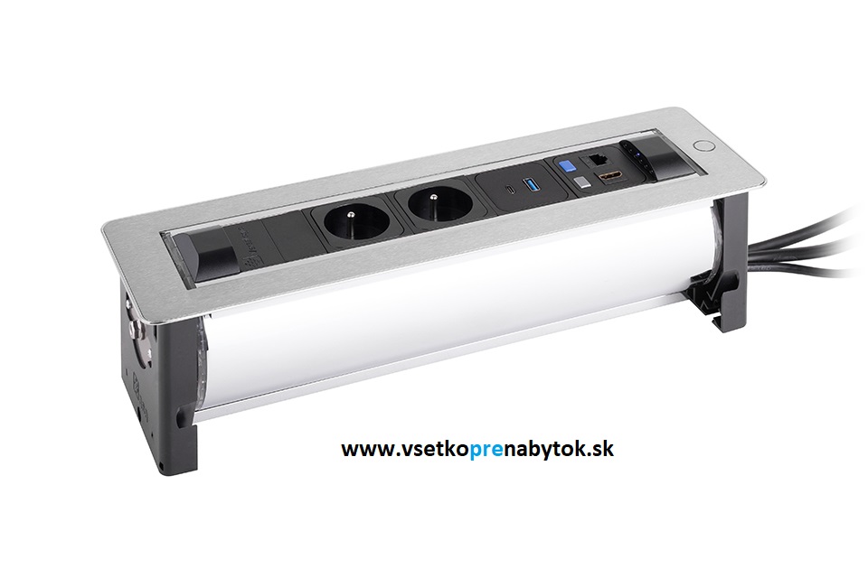 - 2x elektrická zásuvka 230V + 1x data RJ45 + 1x HDMI + 2x USB (1 x A + 1 x C) + 5V